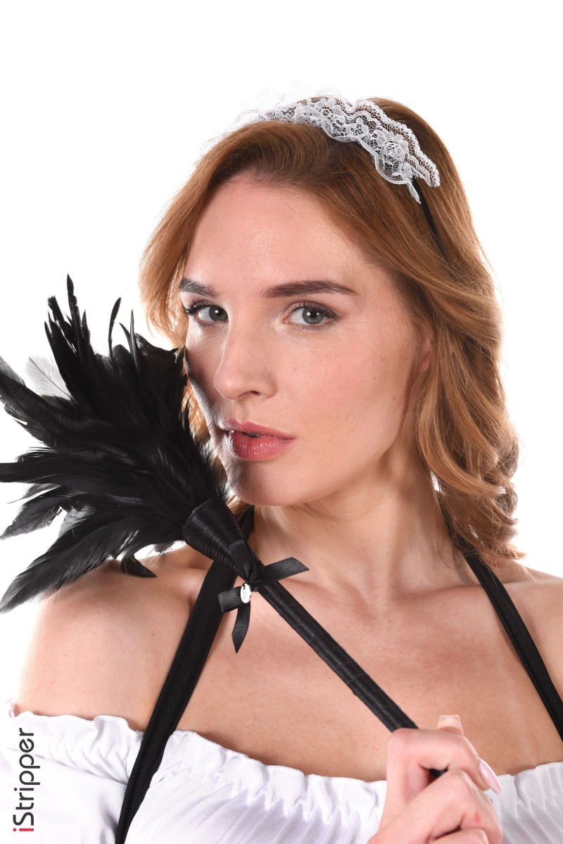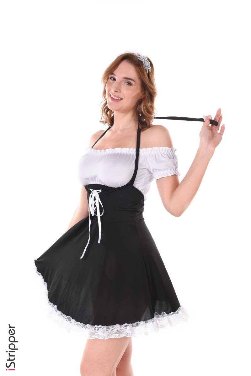 Oh wow, the "Geez It's Dirty Here" striptease scene is really starting to heat up now with Bonni Gee wearing a maid costume, teasing the viewer while holding a feather duster. She is starting to pull down her maid outfit to reveal her incredibly sexy body for you and is inviting you to join her.