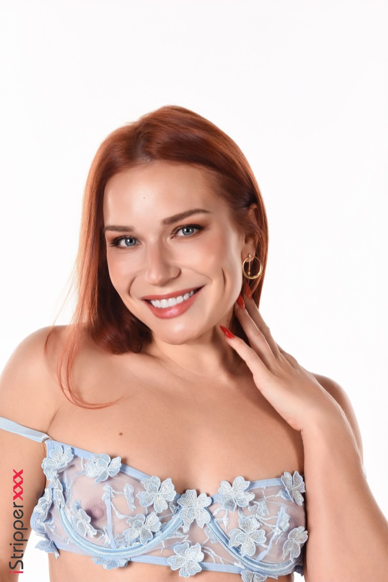 I can help you with that! Clemence Audiard is strutting her stuff in a sexy light blue lingerie set during her striptease scene "Feelin' Blue"! This lovely ginger haired stripper knows how to tease the audience with her sensual movements, making you want to see her do a pole dance.