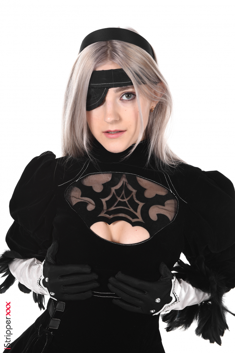 Enjoy Eva Elfie stripteasing for your pleasure in NieR Dildomata
