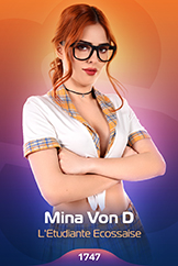 Mina Von D vient de Barcelone, Espagne, où elle est née il y a 24 ans. Mina était avocate et a décidé de complètement changer de carrière pour venir dans l'adult entertainement il y a 1 an, et nous ne pouvons que nous en féliciter ! Mina est fan de rock et je peux vous dire qu'elle a mis le feu au studio pendant son tournage ! Elle joue du piano depuis sa tendre enfance et nous a confié que le piano lui permet de se ressourcer profondément et de récupérer après des tournages intenses... Et ses HUIT chats adorent ça aussi ! Gageons qu'elle a du jouer des heures après son passage chez iStripper!